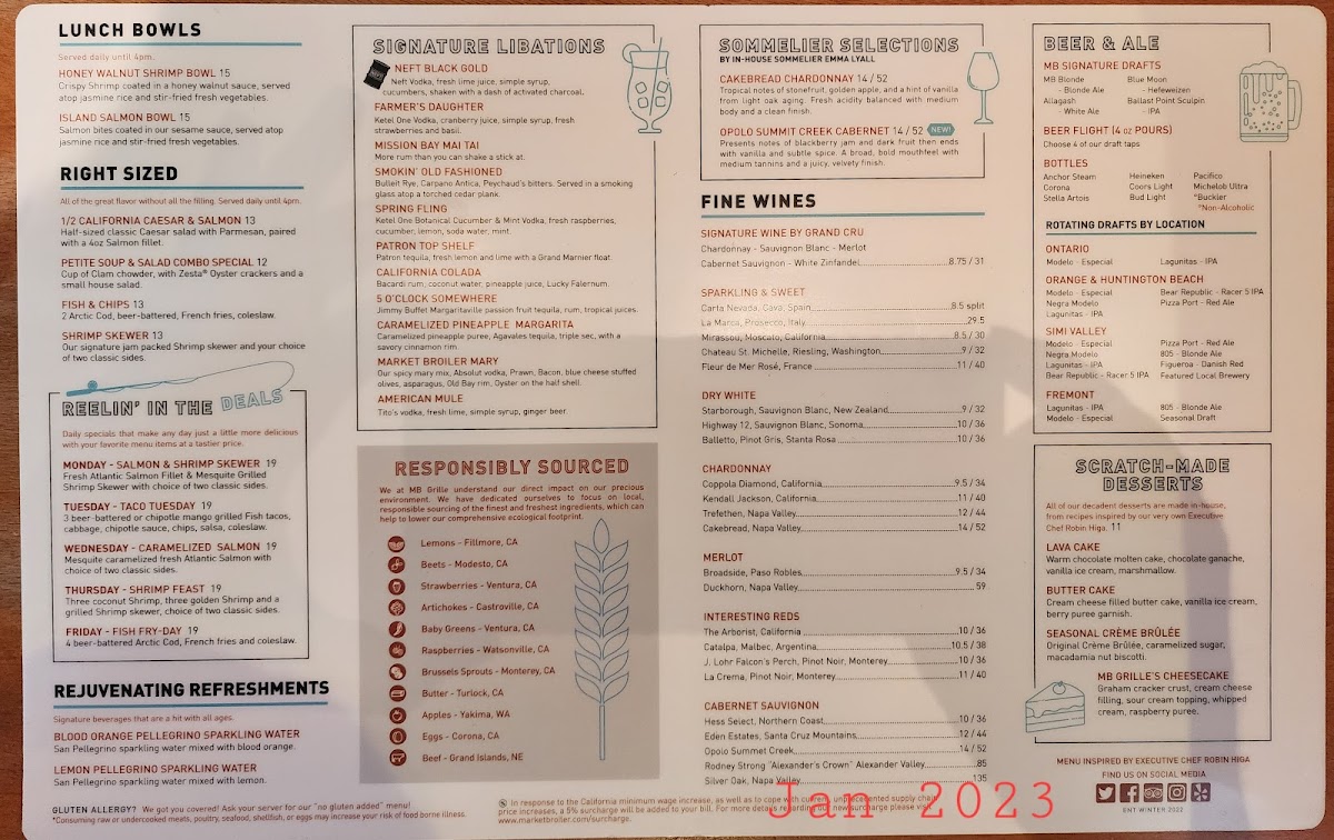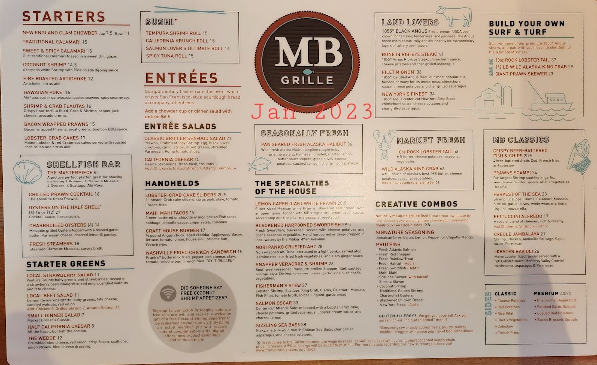 The menu at Market Broiler Fremont focuses primarily on seafood offerings complemented by select land-based options. It is composed of several well-defined sections catering to a variety of tastes and dining preferences.